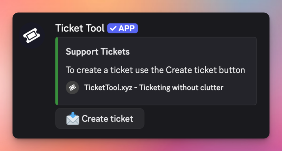 Instructions for creating a ticket to receive direct support from our customer care team. First, navigate to the channel: #support and click on Create ticket.