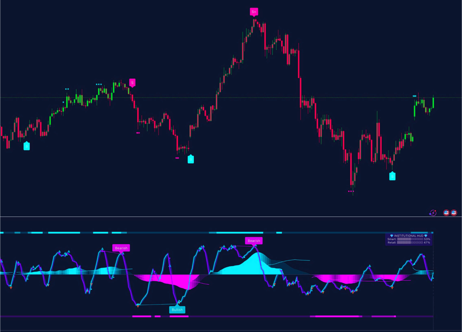 - Smart Money Flow (MFI‑based oscillator with dynamic thresholds)